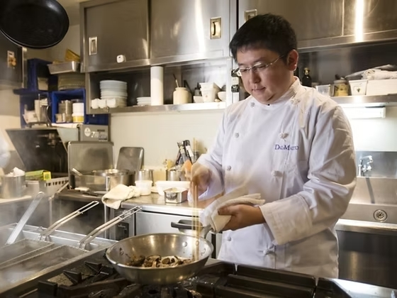 イタリアに在住していた頃、持参して勉強していた本で見た落合務シェフの料理に惹かれ、就職を希望する手紙を日本へ郵送。