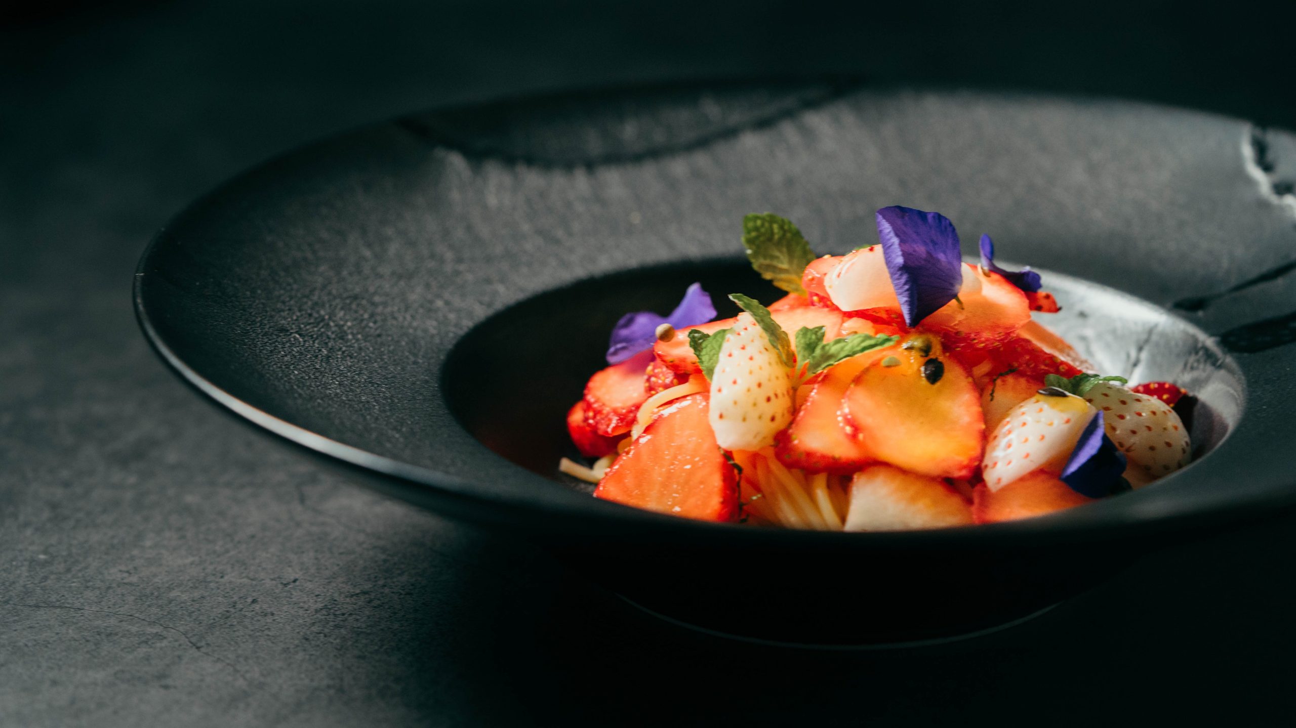 ・季節のフルーツと濃縮トマトの冷製パスタ